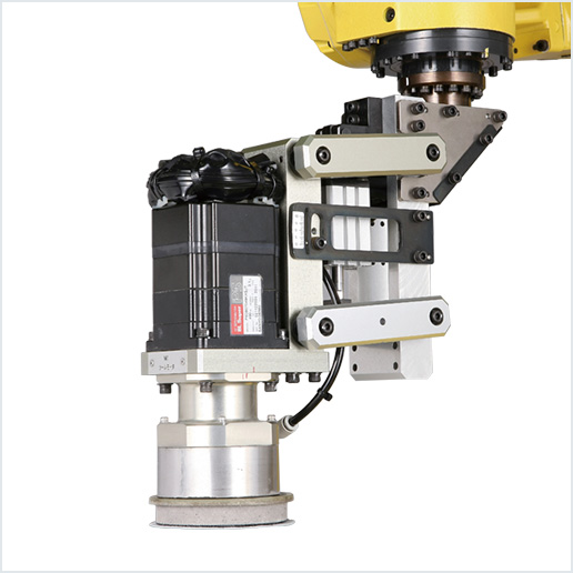 The use of a linked structure for linear sliding both improves rigidity and enables smooth floating. By profiling the irregularities in the workpiece surface and applying tools at a given level of force, it is possible to machine in a variety of directions from flat surfaces to curved surfaces, while absorbing variances in workpiece dimensions and clamps. The robot applies thrust control that presses a tool at a given level of force without being affected by the tool angle.Wheel tool holder
